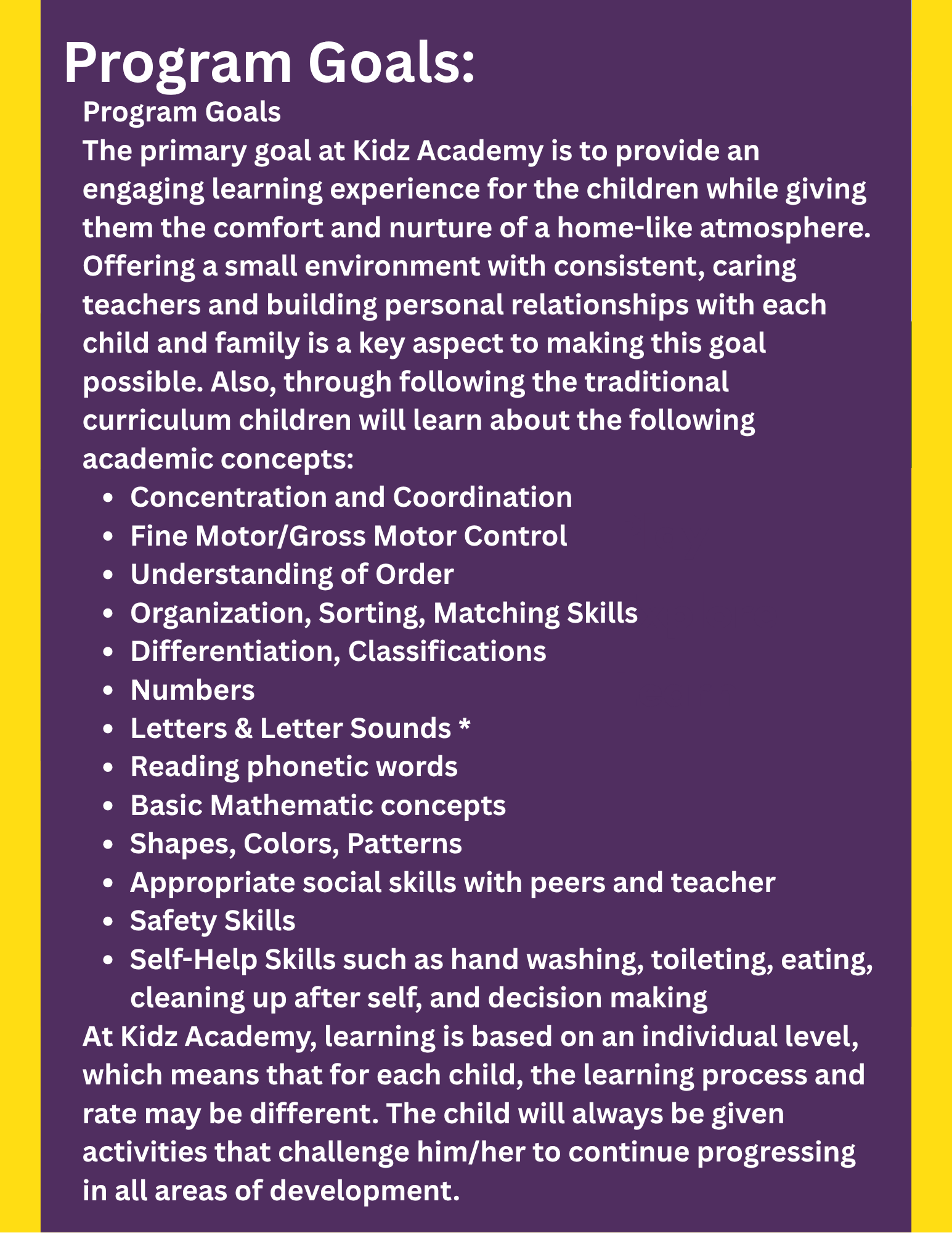 Program Learning Goals For Kidz Academy, conveniently located in St Charles MO